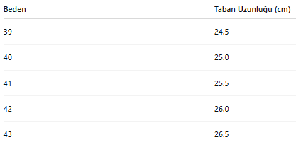 Topuk Yüksekliği: Optimal konfor için düşük topuk (1-3 cm).