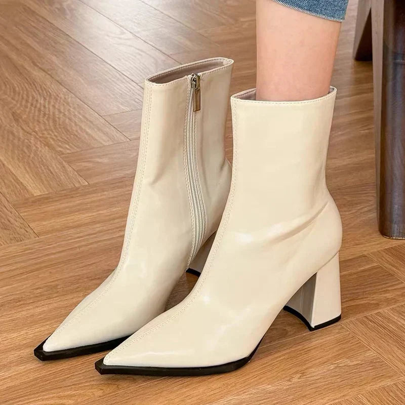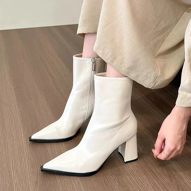 Yüksek kaliteli PU üst malzeme ve dayanıklı kauçuk taban ile üretilen bu botlar, optimum destek ve konfor sunar. Şık blok topuk ile 5cm-8cm yükseklik ve sivri burun şekli, soğuk günler için mükemmel bir arkadaş.