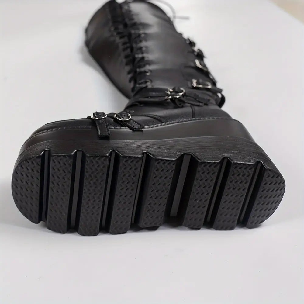 Moda Unsurları: Trendy bir vurgu için platform taban ve toka detayı.