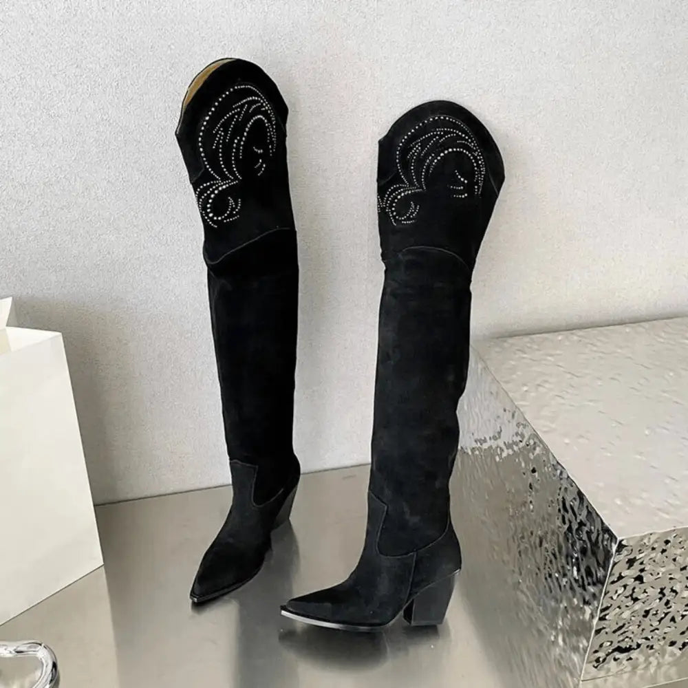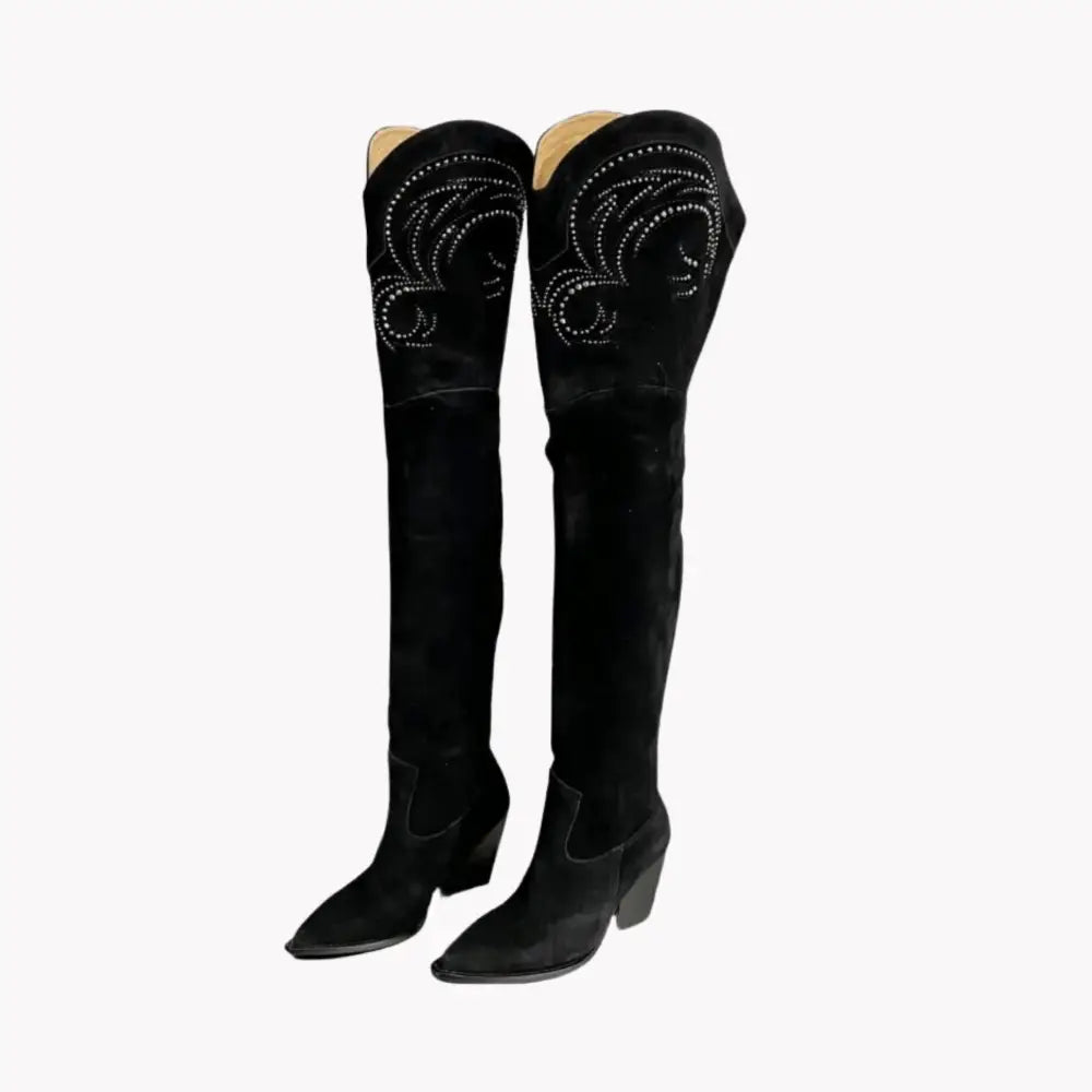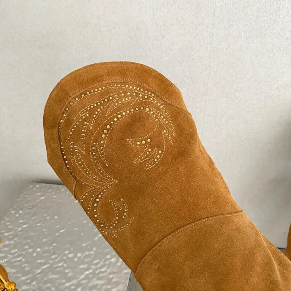Düz blok topuk ve yüksek bilek (diz altı) ile her binici için idealdir. Pratik kayma tasarımı, hızlı giyip çıkarmayı sağlar ve tek renkli desen, zamansız bir zarafet sunar.