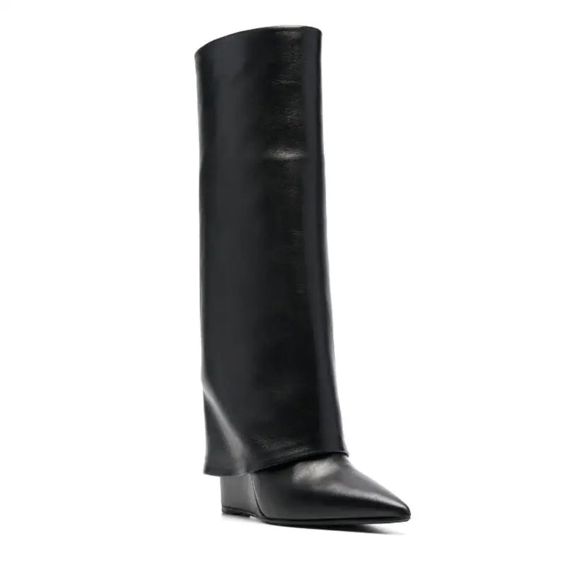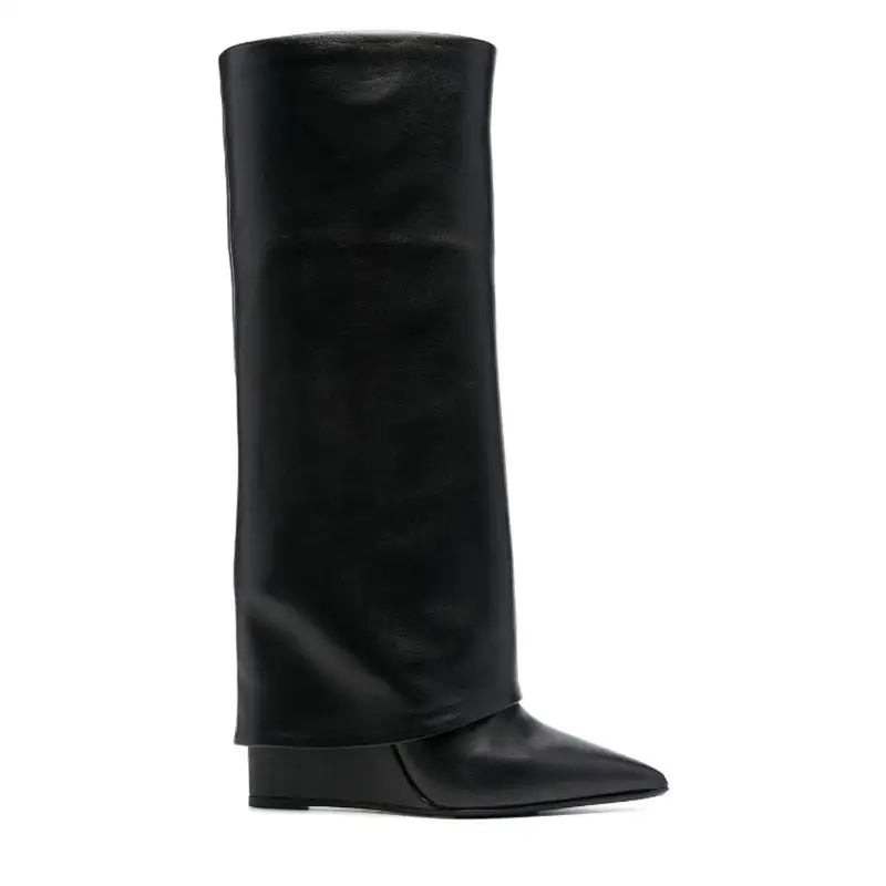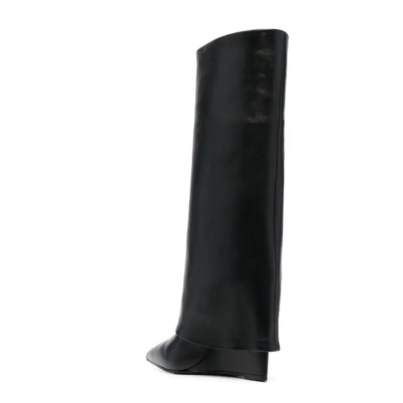 Bu modern botlar, yüksek kaliteli sentetik PU derisi ile stil ve konforu bir arada sunar. 3–5 cm yükseklikte blok topuk ve platform taban sayesinde bacaklarınızı optik olarak uzatır ve sıcak tutar.