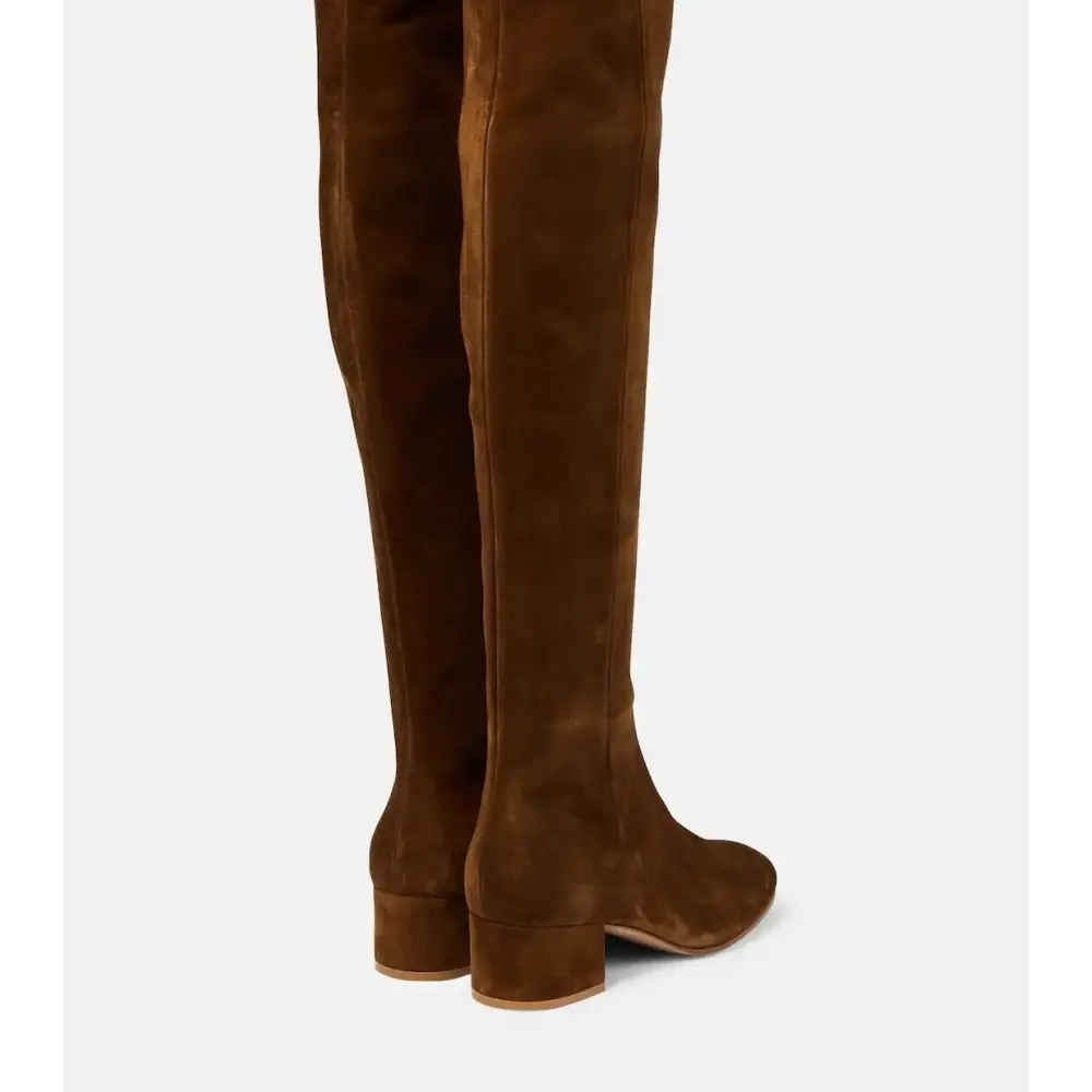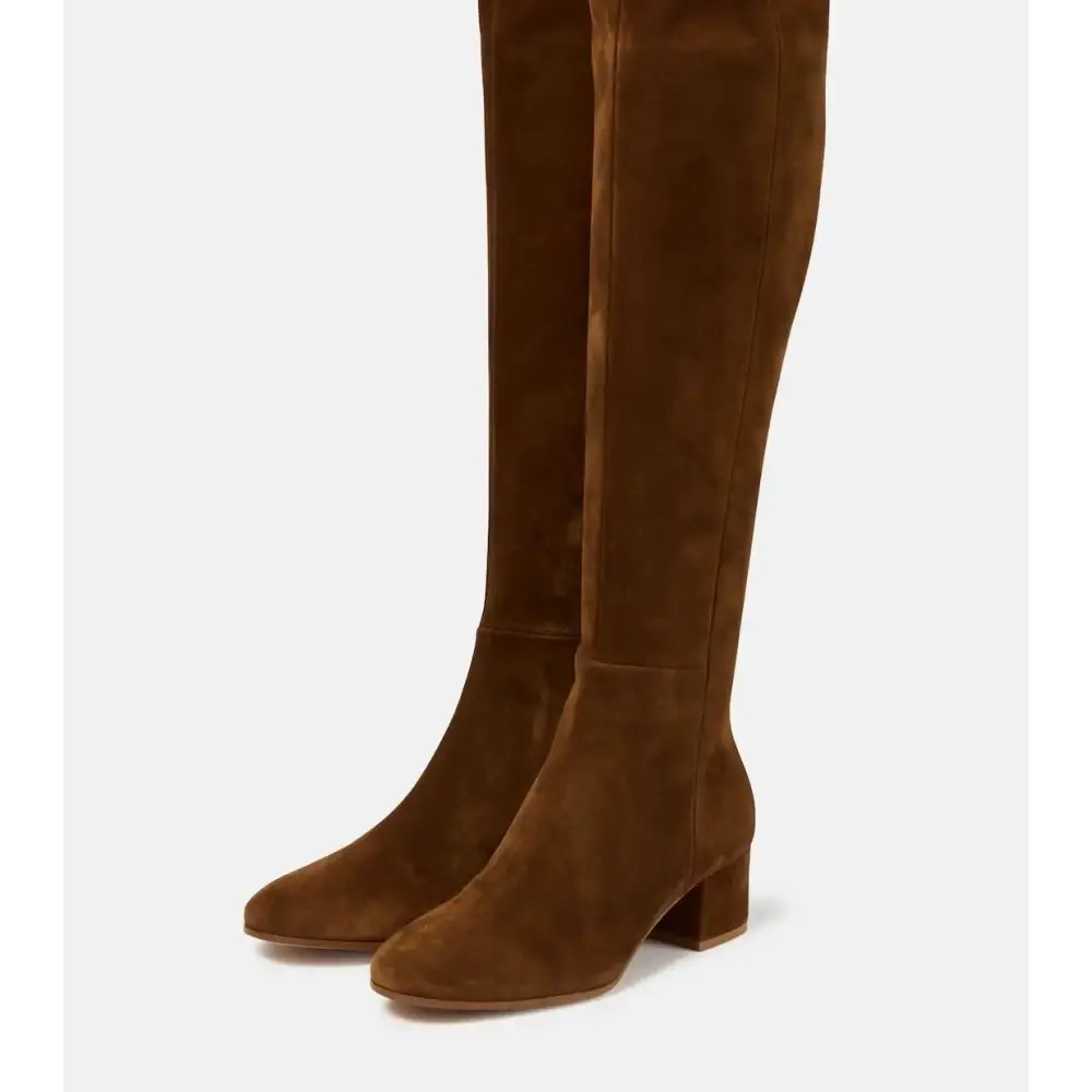 Bu şık bot, yüksek kaliteli süet malzemeden üretilmiştir ve kadife bir yüzey sunarak maksimum konfor sağlar. Lastik tabanı, optimal tutuş sağlarken, yuvarlak burun ve blok topuk yüksekliği 6–8 cm ile siluetinizi mükemmel bir şekilde vurgular.