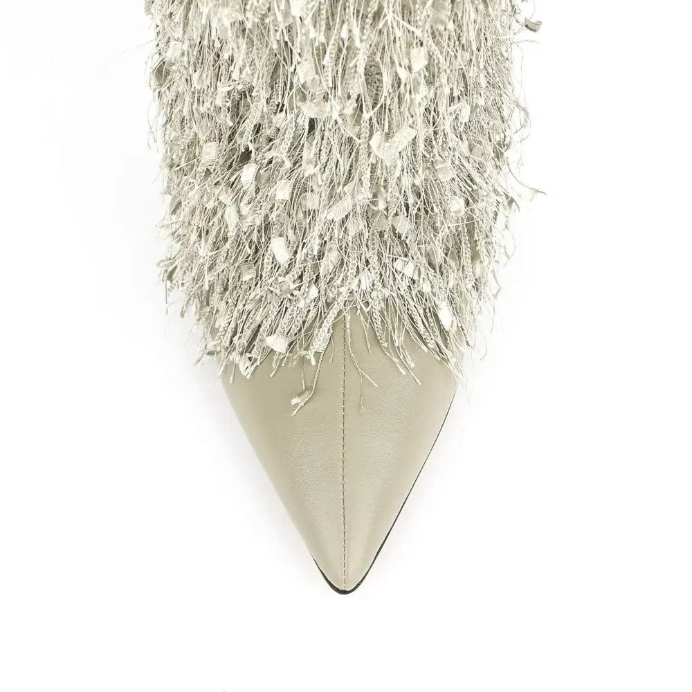 8 cm'den fazla süper yüksek topuk ve ince burun şekli, şık bir duruş sağlarken, hafif ve esnek EVA taban malzemesi sayesinde konforlu bir giyim deneyimi sunuyor.