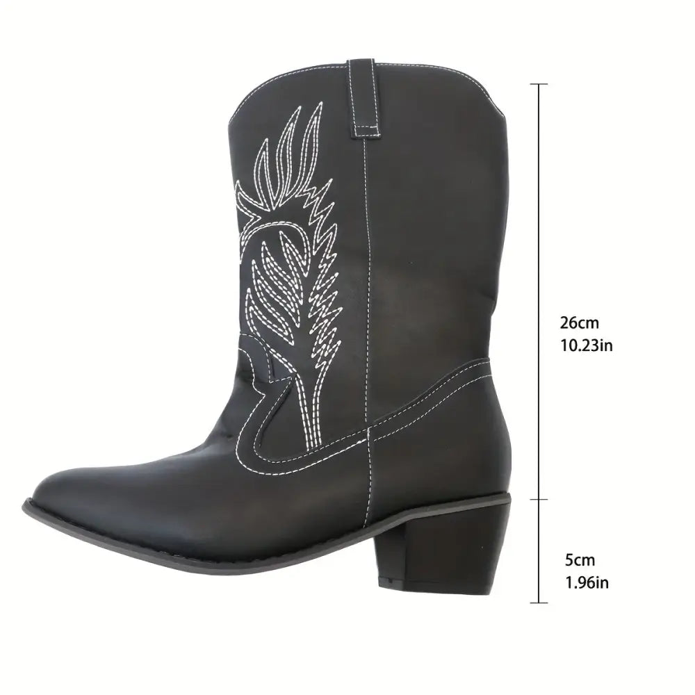 Yüksek kaliteli sentetik PU deri malzemeden üretilen botlarımız, dayanıklılık ve konfor sağlar. Lastik taban sayesinde optimum çekiş elde ederken, yuvarlak burun şekli ve nal topuk (3-5 cm orta topuk) şık bir görünüm sunar.