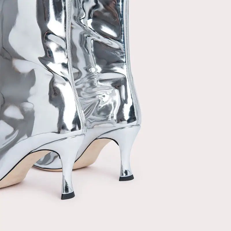 Ayak bileği yüksekliği ile modern tasarımı ve her adımda göze çarpan parlak detaylarıyla bu botlar, stilinizi her ortamda ön plana çıkarır.