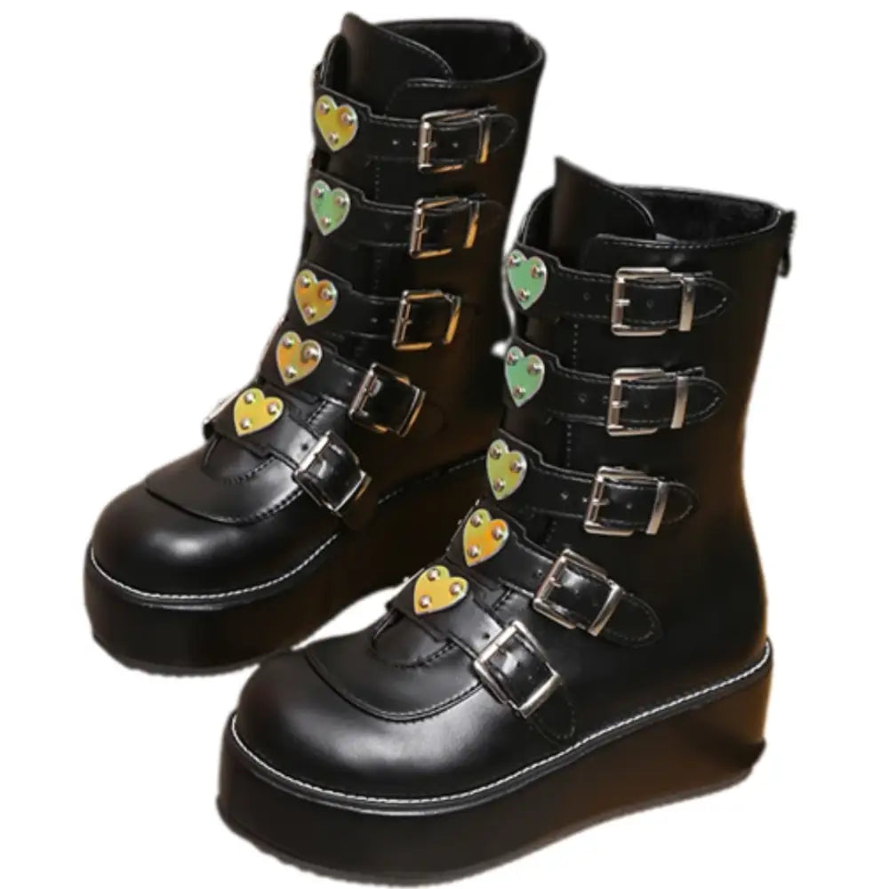 Yuvarlak burun ve ultra yüksek blok topuk (8 cm'den fazla) ile şık bir görünüm elde edin. Metal detaylar ve tokalar modaya uygun vurgular ekler.