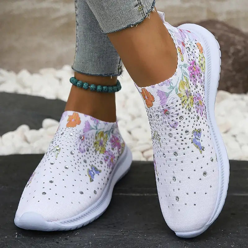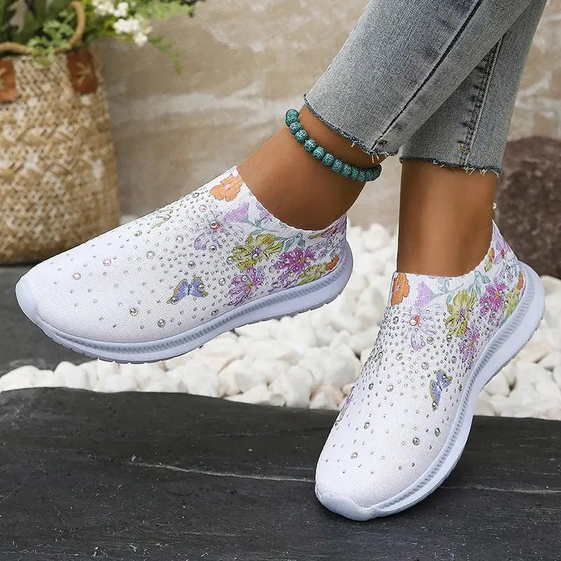 Ayakkabılarımız, parlak taş detayları ve düz bilek kısmı ile her durum için idealdir. Yuvarlak burun şekli, rahat bir uyum sağlarken, ağ kumaş üst yüzey ve pürüzsüz deri yüzey nefes alabilirlik ve şıklık sunar.