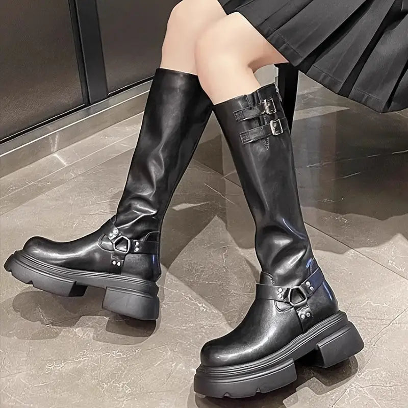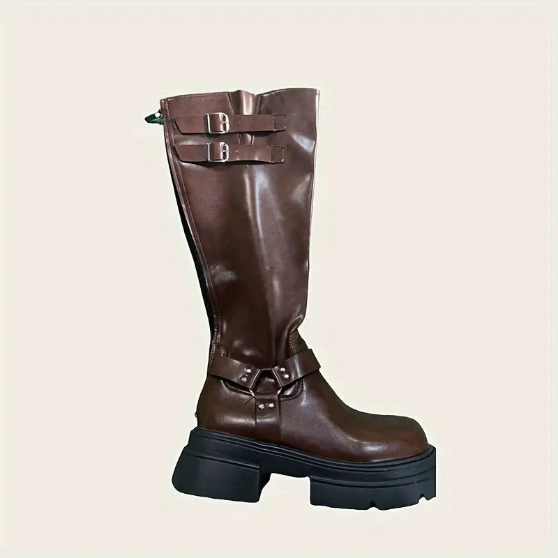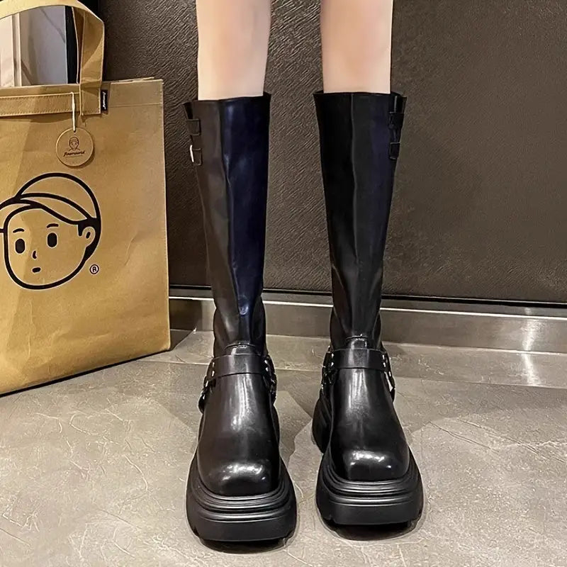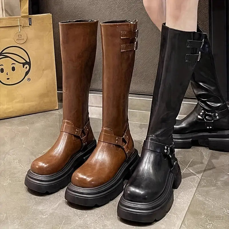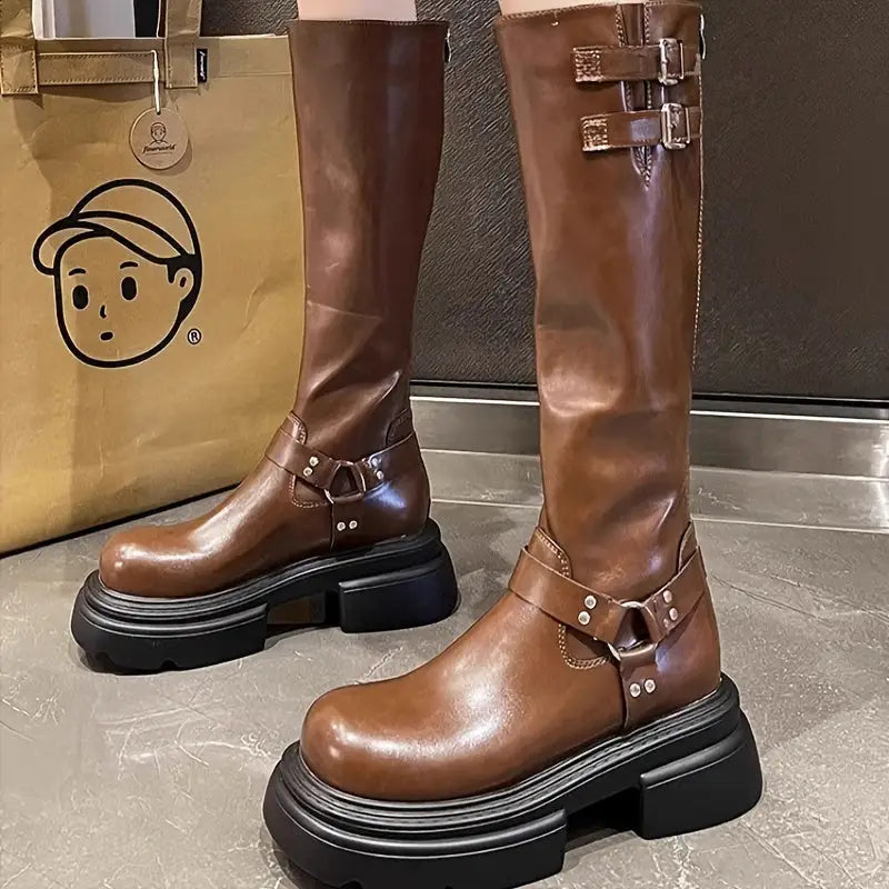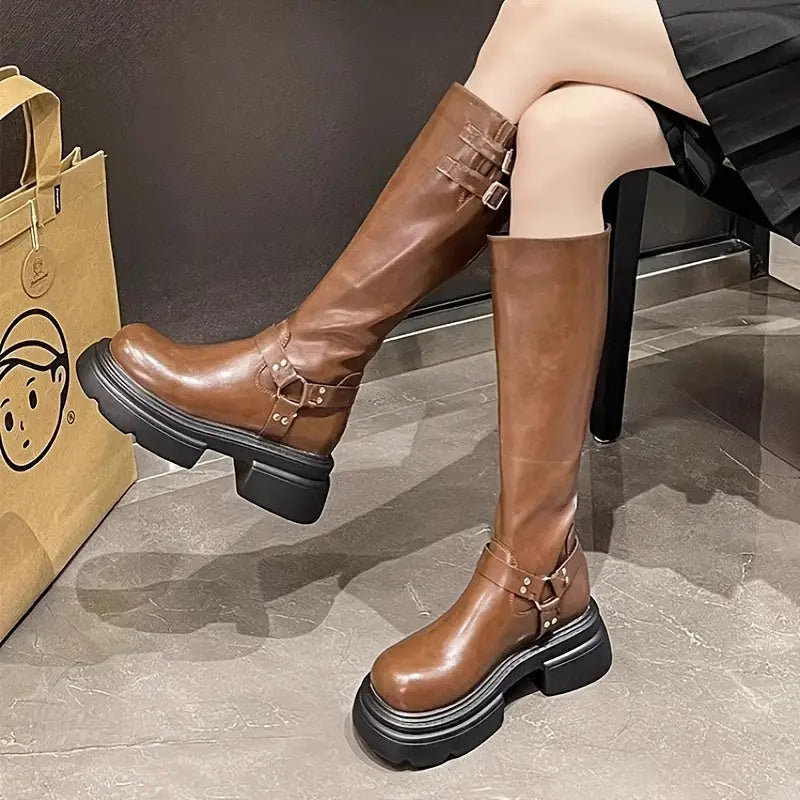 Vintage/retro tarzı ve yuvarlak burun şekli ile dikkat çekici bir görünüm sunar. 3–5 cm yükseklikteki blok topuk, rahat bir giyiş sağlar; yüksek bacak boyu ise ekstra koruma sunar.