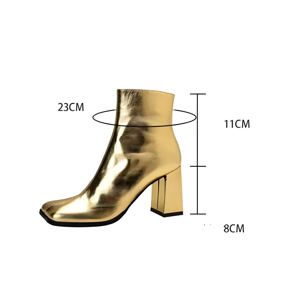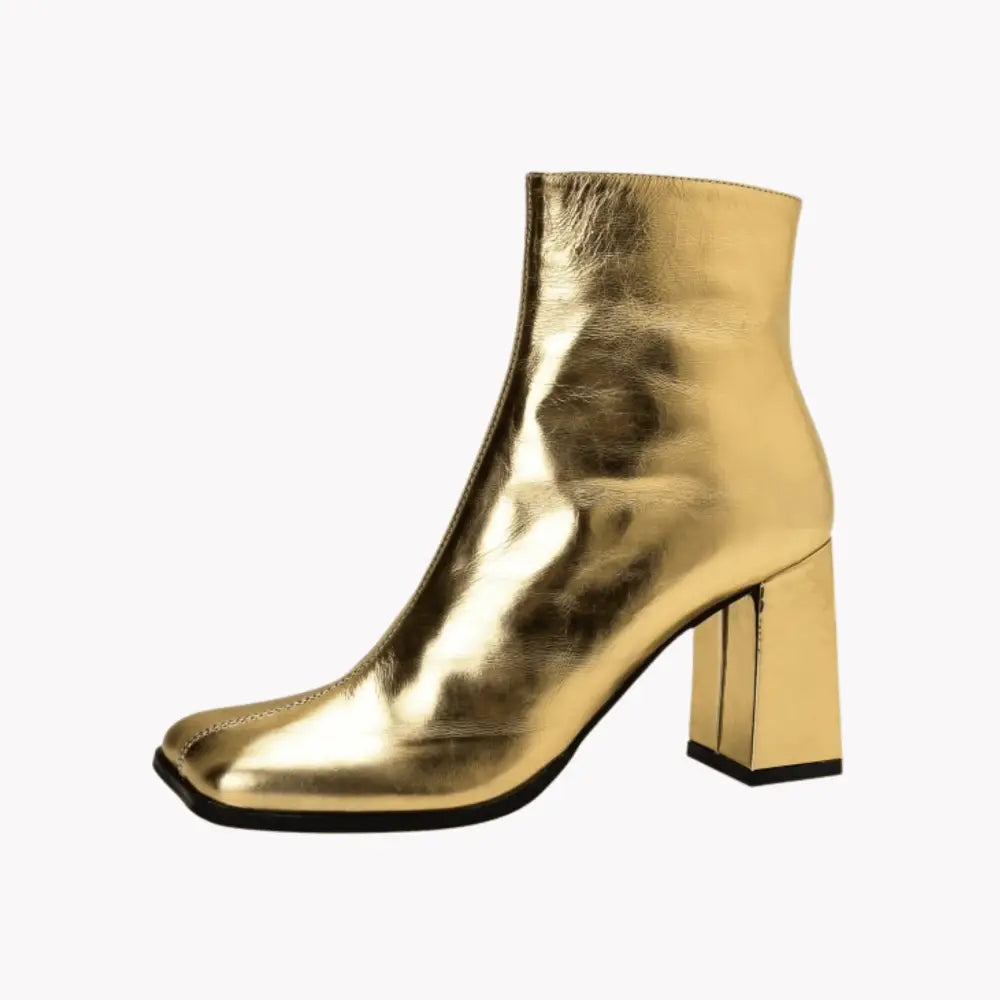 Lastik tabanı sayesinde mükemmel tutuş sağlarken, yuvarlak burun ve kalın topuk (6–8 cm) ile şık bir görünüm elde edersiniz. Düşük bilek yapısı ve pratik yan fermuarı ile kolayca giyilebilir, aynı zamanda optimal destek sunar.