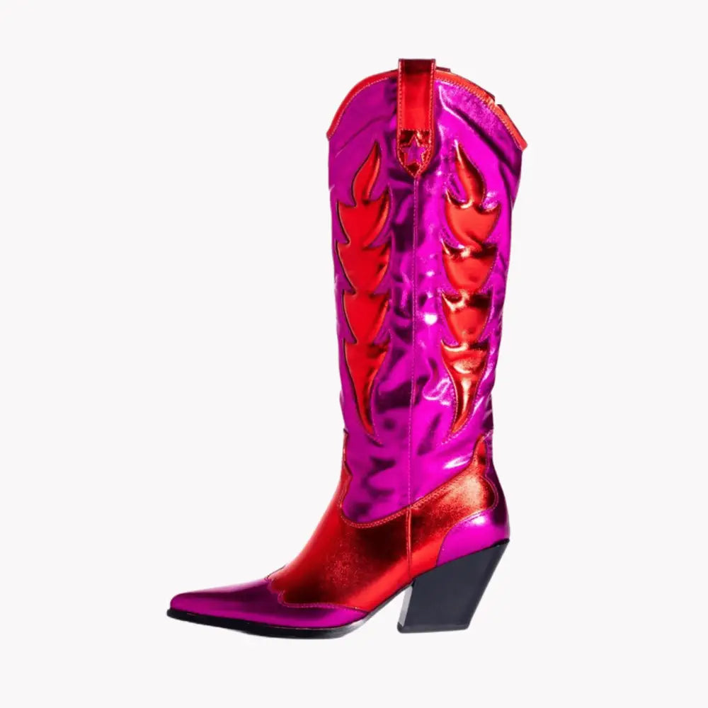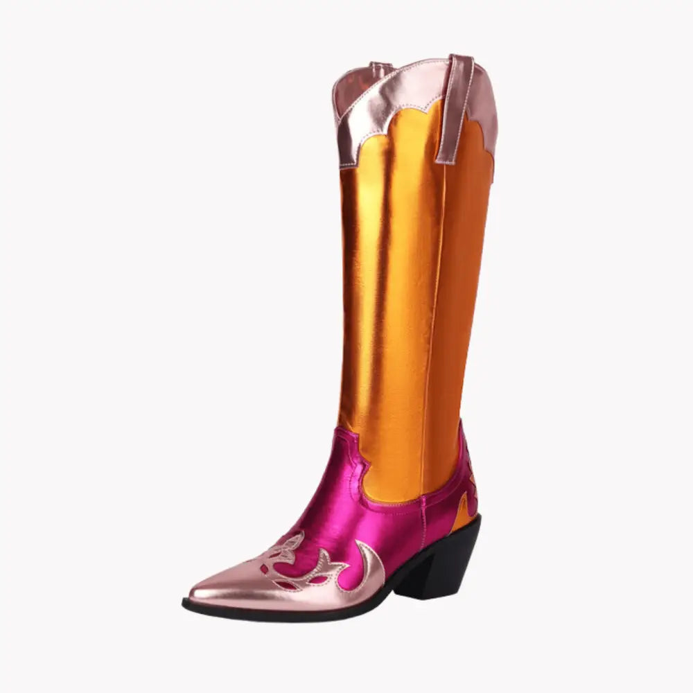 Bu modaya uygun şahmerdan bot, yüksek kaliteli saten ile stil ve konforu bir araya getiriyor. İnce burun ve blok topuk tasarımı, etnik bir görünüm sunarken, orta bot yüksekliği çok yönlü giyme seçenekleri sağlıyor.