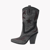 Yüksek kaliteli sentetik PU derisinden üretilen bu bot, stil ve dayanıklılık sunar. Lastik tabanı ile optimal tutuş sağlarken, ince burun ve blok topuk (6-8 cm) şık bir siluet oluşturur.